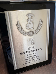 この度、当社は静岡県警察及び自動車安全運転センター静岡県事務所より、優秀安全運転事業所として銀賞を受賞しました。